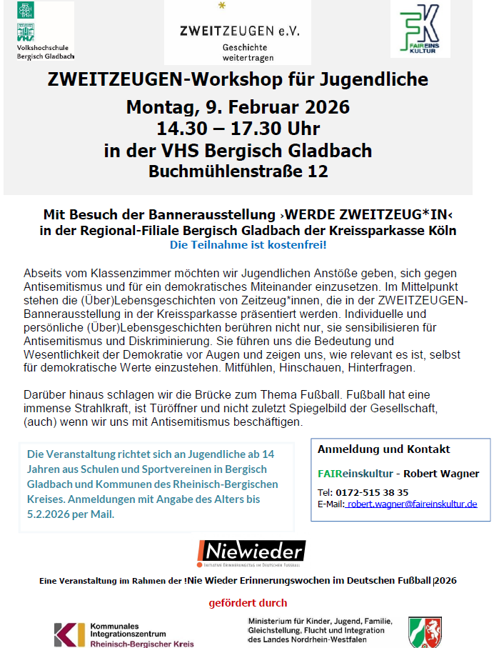 ZWEITZEUGEN-Workshop für Jugendliche, Montag, 9. Februar 2026